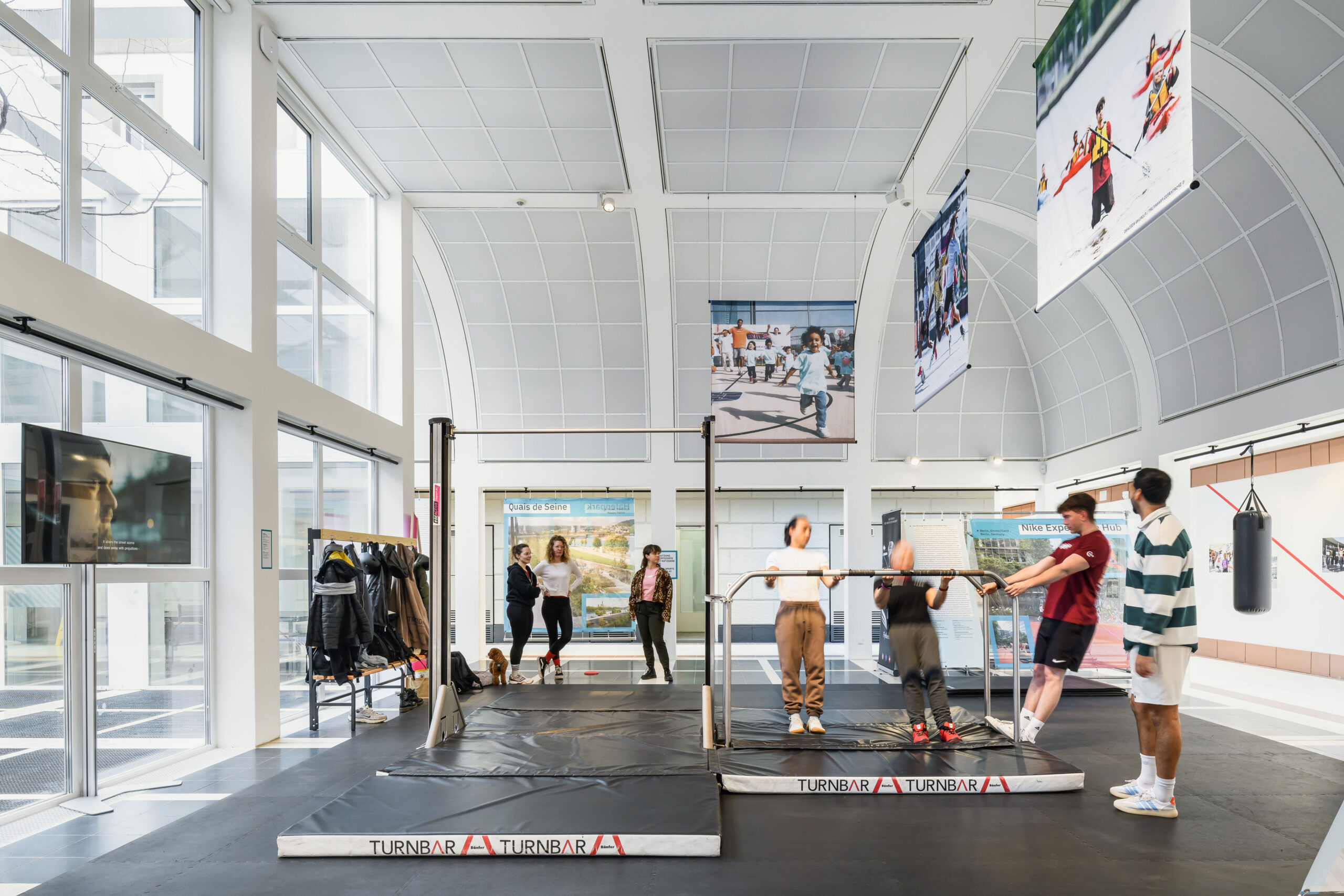 Die Ausstellung DIE STADT IST DER SPORT zeigt noch bis zum 07. Juni in erweiterter Form zwölf Projekte aus Europa, die sportliche Aktivität und Bewegung auf innovative Weise in den Stadtraum integrieren. Besucher*innen der Ausstellung entdecken diese dabei selbst als Spielfeld von Sport und Fitness, dank der Kooperation zwischen dem Deutschen Architekturmuseum (DAM) und dem Sportkreis Frankfurt sowie den Frankfurter Turn- und Sportvereinen: Ein Mattenbereich, verschiedene Calisthenics-Sportgeräte, eine Cross-Cricket-Station und eine Kegelbahn stehen allen zum gemeinsamen Workout zur Verfügung. Außerdem bringen Workshops und Sportveranstaltungen das Deutsche Architekturmuseum (DAM) regelmäßig in Aktion – mach mit und sei dabei!