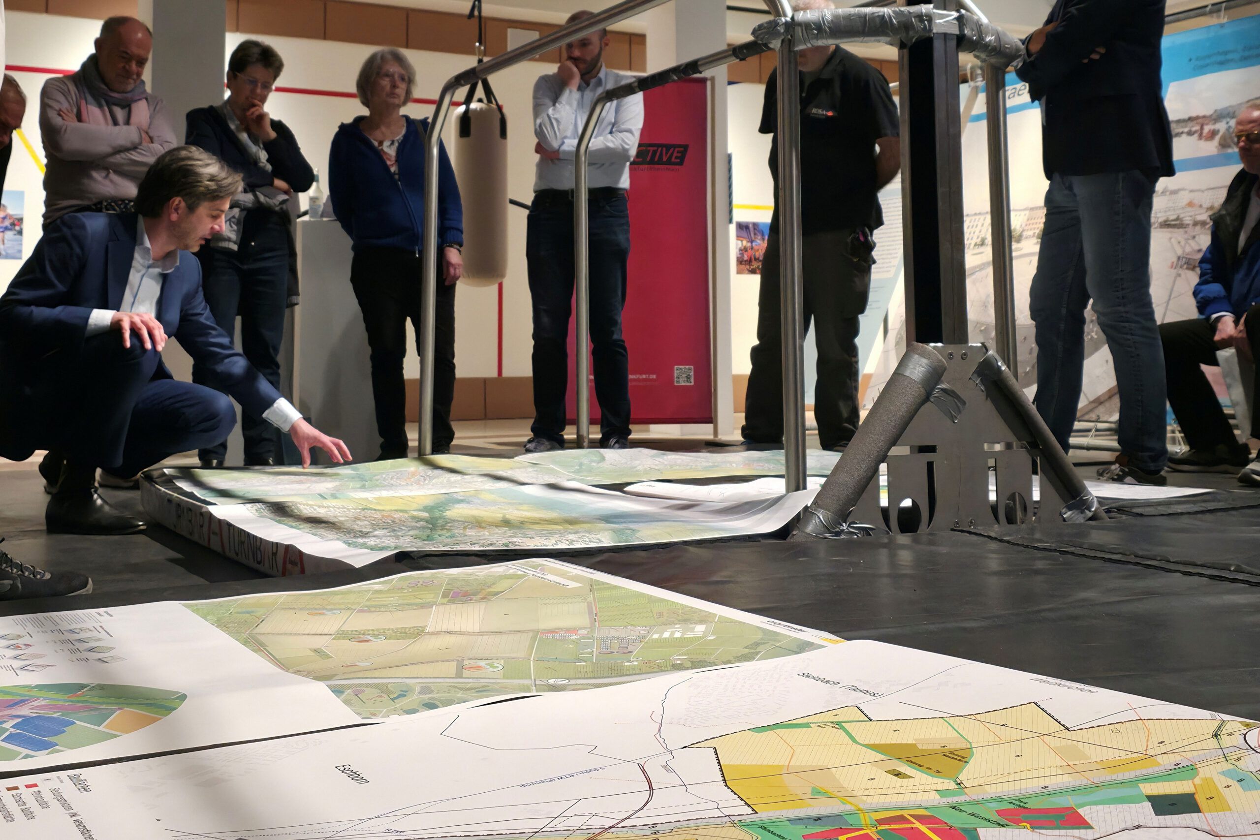 Inmitten der Ausstellungsfläche stellte Stadtrat Gwechenberger den Planungsstand für den neuen „Stadtteil der Quartiere“ (sog. Josefsstadt“) im Frankfurter Norden vor, wo zwischen Praunheim, Niederursel und Nordweststadt bis zu 7.000 Wohnungen entstehen sollen. Dabei sei für ihn grundlegend wichtig, in der Stadtplanung die Themen „Stadtentwicklung und Sport zusammen zu denken.“ Sowohl für die derzeitigen Umsetzungen und Planungen (u.a. eine 6-Felder-Halle in Bonames sowie Sportflächen auf dem Dach und in einer Etage des Peek&Cloppenburg auf der Zeil) als auch insbesondere für den neuen Stadtteil seien Sportflächen sowie gestaltete Bewegungsräume des täglichen Lebens essenziell. Im neuen „Stadtteil der Quartiere“ können moderne Schul- und Vereinsporthallen, weitere Sportflächen und sonstige Vorzeigeprojekte, wie sie in der Ausstellung an Beispielen aus Paris und Kopenhagen gezeigt werden, realisiert werden. Die dafür vorgesehen Standorte erläuterte der Planungsdezernent auf groß ausgelegten Plänen.